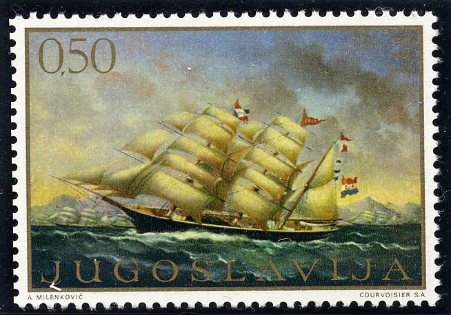 Stamp design is based on an oil painting by Captain V.Ivankovic, now in the Maritime Museum at Dubrovnik.