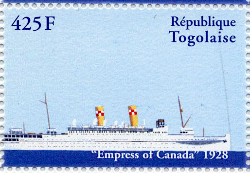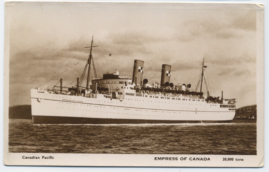 RMS Empress of Canada was an ocean liner built in 1920 for the Canadian Pacific Steamships (CP) by Fairfield Shipbuilding & Engineering Company at Govan on the Clyde in Scotland. This ship -- the first of two CP vessels to be named Empress of Canada -- regularly traversed the trans-Pacific route between the west coast of Canada and the Far East until 1939. This Empress was distinguished by the Royal Mail Ship (RMS) prefix in front of her name while in commercial service with Canadian Pacific.