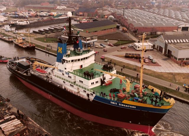 17 December 1983 launched as SMIT SINGAPORE two sisters the SMIT LONDON and SMIT ROTTERDAM.