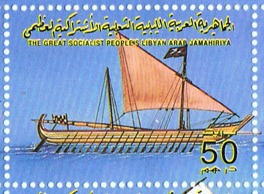 Libya 1993 50d sg2141 (exact the same image is depict in Bjorn Landstrom book Sailing Ships on page 52/53 and there given as a Byzantine dromon from the early 13th century.)