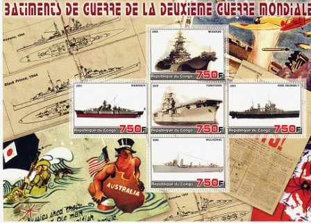 In 2005 a miniature sheet of 5 stamps, showing warships (HMS KING GEORGE V, HMS