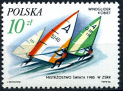 Poland 1986 10z sg3055 the stamp shows, Polish Małgorzata Pałasz-Piasecka, world champion windsurfing for women, Tallinn, Estonia in 1985.