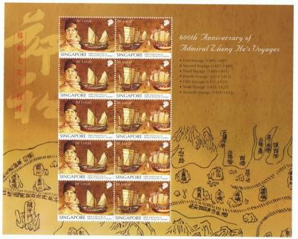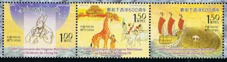 On 28 June 2005, the State Post Bureau will issue a three-piece set of commemorative stamps, "The 600th Anniv. of Zheng He's Voyages to Western Seas", with a total face value of 2.40 yuan. A souvenir sheet was issued at the same time, with a face value of 6 yuan. The pictures on the stamps are:"Portrait of Zheng He", "Good-Neighborly Relations", and "Scientific Navigatioin", respectively, and the souvenir sheet is titled "The 600th Anniv. of Zheng He's Voyages to Western Seas".