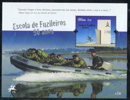 The stamp and souvenir sheet celebrates 50 years since the foundation of the Portuguese Marine Corps.