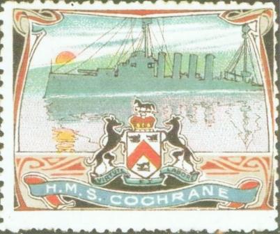 HMS COCHRANE was laid down on 24 March 1904 and launched on 28 May 1905 at Fairfield Shipbuilding and Engineering, Govan, Scotland. She was commissioned with a nucleus crew on 18 February 1907. She joined the Nore Division of the Home Fleet on 6 March 1907 and shortly afterwards was brought into to full commission for service with the 5th Cruiser Squadron. On 1 April 1909 she recommissioned for service with the 2nd Cruiser Squadron with which she remained until September 1917. She escorted the Royal Yacht Medina in 1911–12. HMS COCHRANE, accompanied by her sister HMS Achilles and three other armoured cruisers were sent to reinforce the defences of the Shetland Islands on 2 August 1914, days before the start of the First World War. She, and her squadron, were assigned to the Grand Fleet for most of the First World War. She took part in the Battle of Jutland on 31 May–1 June 1916, along with the cruisers Minotaur, Shannon, and Hampshire under the command of Rear-Admiral Heath. However, the ship remained unengaged throughout the battle, and did not fire her 9.2 or 7.5-inch guns at all during the battle.