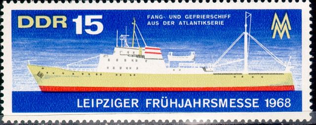 French Southern and Antarctic Territories used in 1994 one stamp for the “Scientific Management of Fisheries” which shows us a stern trawler of the Atlantik type built in East Germany from 1966 till 1974.