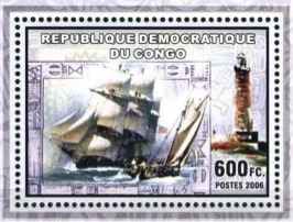 The STAMP 600FG depicts copy of the painting John Michael Groves:”A King’s Ship-A corvette in passing squall over Portsmouth.
