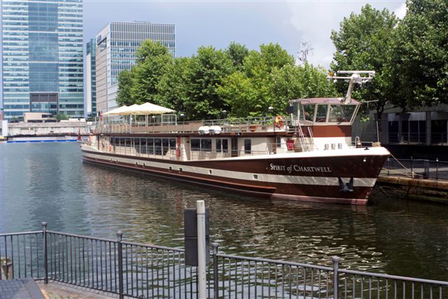 MV SPIRIT OF CHARTWELL is a hotel barge owned and operated by the Magna Carta Steamship Company for luxury cruises along the River Thames. In late 2011 she was selected to be the royal barge as part of Queen Elizabeth II's Diamond Jubilee celebrations, and carried the Queen and the Duke of Edinburgh in a flotilla of more than 1,000 vessels during the Thames Diamond Jubilee Pageant on 3 June 2012.