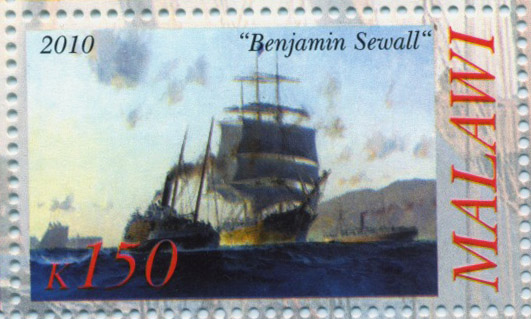 The Benjamin Sewall was launched from the 'ways' on 27 October 1874, in the presence of the 80-year-old Benjamin Sewall, the prosperous Boston businessman after whom she was named, and whose bust can also be seen in the photograph adorning the scroll on her stern.