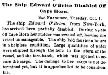 1867 She made the same voyage but this two voyages were the only two in which she sailed direct from the Atlantic to San Francisco.