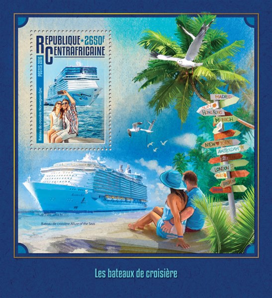Central African Republic 2016 2650F sgMS?, scott? (the cruise vessel in the margin is the ALURE OF THE SEAS.)
