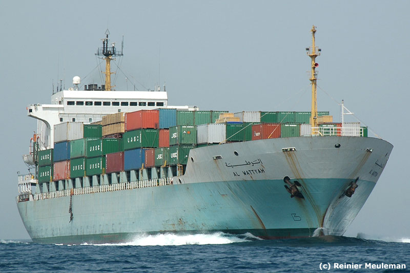 Built in 1979 by Hyundai Heavy Industries Ltd. Co. Ulsan, #116, for United Arab Shipping Co. Kuwait. Container ship, Gt:20.526, Nt:7849, Dw:20.231, Loa:183,24m. Lbp:168,76m. B:27,49m. D:15,91m. Draught:10m. 7 cyl. Mitsui/B&W engine:14.600 hp. (10.739 kW.) 17 kn. TEU:1612, IMO.7802275.