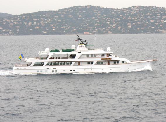 Built in 1980 by Mie Zosen, Yokkaichi, Japan, #186, Motor yacht, Gt:399, Length: 172' - 52.43m. Beam: 26' - 7.8m. Draft: 9' - 2.74m. Power: 2x 900hp. Detroit Diesels, Silenced dry-stack exhausts, Gensets: 2x Detroit Diesel 100kW., 1x Yanmar 40kW. Cruising Speed: 12 kn. Range: 5,500 miles at 12 kn. Fuel: 27,590 gallons, watermaker: 3,000 gpd. bowthruster: 40kW. - 55hp.