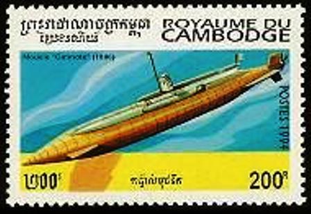 GYMNOTE. Submarine (French) Gustav Zede backed by Admiral Aube laid her down in April 1887. Displacement 31tn. L60'. 6' in diameter. Had a single 14" TT in the bow and was powered by a battery of 564 small accumulators. 6.5kn(surfaced) 6kn(submerged) The accumulator batteries had to be recharged by a generator ashore or from another ship. She also had water tanks for ballast which were emptied by compressed air. Vertical control proved difficult but she remained in use as a test bed into the 1900's. GYM NOTE translates in "ELECTRIC EEL" - Cambodia 1994. 200r. SG1397 (R.L.Trace. LB27/229)