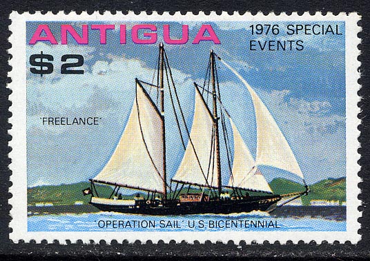 FREELANCE. Stay Sail Schooner. Built in 1907. 81Brt. L30.0m. 19.0m wI. B5.7m. Dr4.1m. She carried 370sq.m. of sail. Two diesel engines of 100hp. Owner in 1984 was a Mr Bailey of Falmouth - Antigua 1976. $2. SG524. Barbuda 1976. $2. SG325 (A Palmhof)