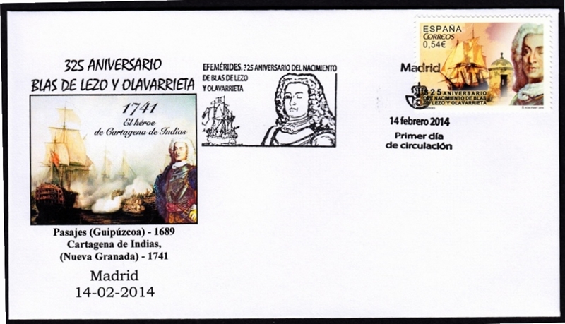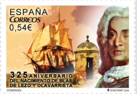 The stamp commemorates the 325th Anniversary of the birth of Blas de Lezo.