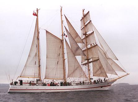 The 2nd ISKRA came into service on 11-08-’82, replacing the original three-masted schooner ISKRA witch had served the Polish Navy from 1927 until 1977, designed by the famous Polish naval architect Zygmant Choren. The 1st of this successful class was the POGORIA and the 2nd to be built was the ORP ISKRA II, mainly differs by her hull shape around the stern whitch has been hydro-dynamically improved. Her deck layout is also different from her sisters POGORIA, KALIAKRA and OCEANIA as they have all been customised to their individual needs.
