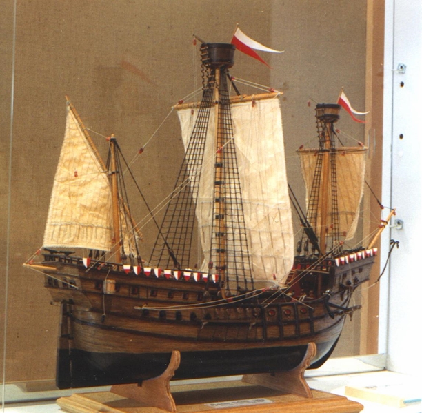 Mostly the cog was a one masted vessel but the later types were larger and carried two and three masts, the latter have a lateen mizzen sail. Length on the waterline 20m, width 7.20m.