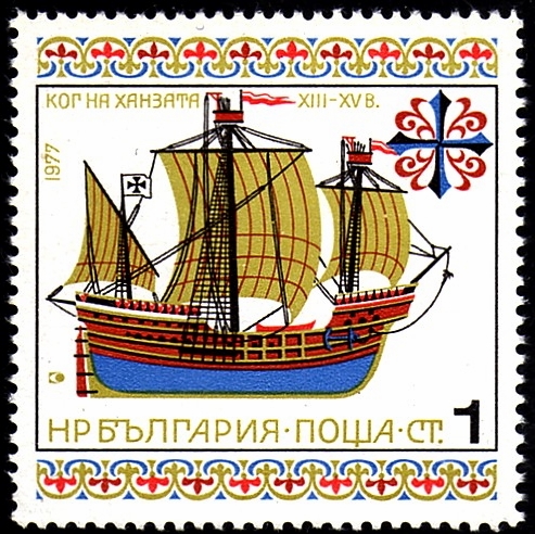 Bulgaria 1977 1St sg 2597, scott2431. The photo shows a model of a Hansa cog around 1470.