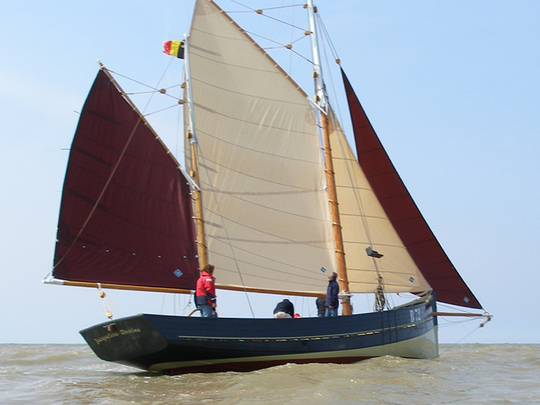 In the years 2000 she was found in a very bad condition and brought to Blankenberge, were she was totally restaurated in the original building (sails, no wheelhouse, engine). In 2006 she was ready for a second life. Owned by the VZW. De Scute, here home port is now Blankenberge and she got the registration number B.72 (is not registrated as a official fishing vessel). She is part of the Belgian Maritime Heritage)