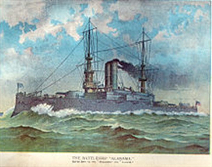 The second ALABAMA (Battleship No. 8) was laid down on 1 December 1896 at Philadelphia, Pa., by the William Cramp and Sons Ship and Engine Building Co.; launched on 18 May 1898; sponsored by Miss Mary Morgan, daughter of the Honorable John T. Morgan, United States Senator from Georgia; and commissioned on 16 October 1900, Capt. Willard H. Brownson in command.