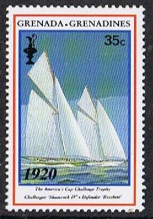 Grenadines of Grenada 1987 60c sg1580, scott1477. (The SHAMROCK IV is the yacht in the foreground with the green hull.)