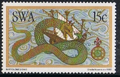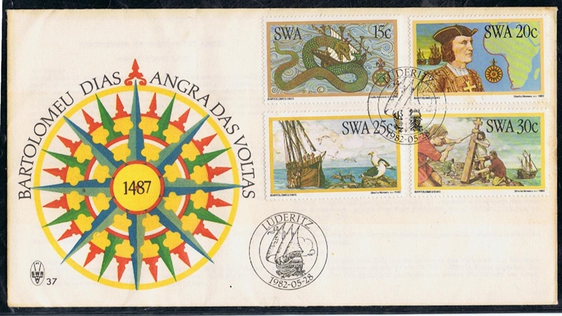 South West Africa issued in 1982 a set of stamps in which the voyage of Bartolomeu Dias is depict. From a leaflet on the issue is given.