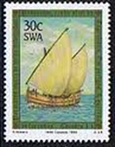 South West Africa issued in 1988 an other set of stamps of which the 40c stamp depict a caravel as used by Dias on his voyage of discovery.