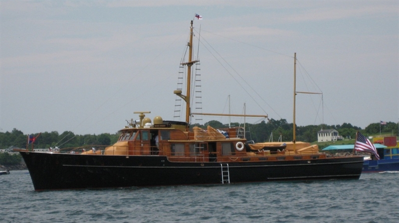 He motor yacht BLACK KNIGHT was designed by Eldrege-McInnes Inc and built for the president of the Mellon bank Lt. Gen. Richard K. Mellon in 1968 by Goudy & Stevens at East Boothby, Maine.
