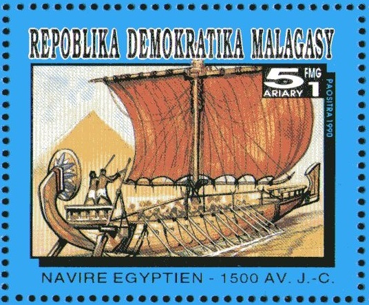 Arturo, I can not agree that the ship is the picture of the stamp is a ship Hatshepsut.Firstly,it is the ship of river, and secondly, the ship 2500 BC.I think the artist made a mistake and you repeated this mistake. The ships of Hatshepsut were depicted on the temple walls Del El Bahri (see pictures). I regret.