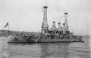 Kansas was laid down by New York Shipbuilding Corporation of Camden, New Jersey. She was launched on 12 August 1905 sponsored by Miss Anna Hoch, daughter of Kansas Governor Edward W. Hoch; and commissionedin Philadelphia Navy Yard on 18 April 1907, Captain Charles E. Vreeland in command.