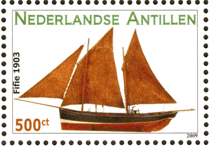 On the stamp depicts a boat Margaret (Fifie) by Henry Lawson, 1890. Henry Lawson (1872–1966) was a fisherman in Pittenweem, Fife, who, as a teenager, earned extra money by painting boats. The Margaret was his father’s first boat (a type known as a fifie) and was used for line-fishing as well as drift-netting. The fifie is a traditional design of boat from the east coast of Scotland. The Fifie is a design of sailing boat developed on the east coast of Scotland. It was a traditional fishing boat used by Scottish fishermen from the 1850s until well into the 20th century. These boats were mainly used to fish for herring using drift nets, and along with other designs of boat were known as herring drifters.