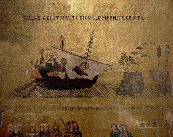 Two Alexandrian monks Stauracius and Theodorus were acting as custodians to the relic. The story continues, in a manner to justify the commercial connection between Venetian Christians and Muslims in Alexandria, that the ship of Tribunus and Rusticus had been blown off their original course causing them to land in Alexandria. This is incongruous to the Venetian mentality of the 11th century that did not seem to mind who they traded with as long as the Venetian state benefitted in the end. The merchants discovered that the Khalif of Alexandria was planning on destroying the relics and the church the relics were housed in. Tribunus and Rusticus then persuaded the monks to allow them to take the relics thereby saving them. The monks and the merchants swapped Mark’s body with that of St. Claudia.