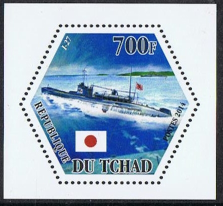 The midget submarine (M27) carried piggy back on deck, as seen on the stamp of Chad which shows us the Japanese submarine I-27 was one of Type A built for the Imperial Japanese Navy. Mostly the midget submarine is given as the HA-14.