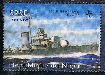 The last stamp of a set of four depicts I believe a World War II, one funnel destroyer from the USA, you can see a life raft standing on the starboard side in front of the bridge, which was used during the war by the USA and British Navy. The base of the funnel is square tapering which is not often seen. Abreast of the funnel you have one life boat.