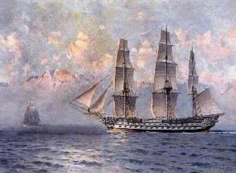 "Empress Maria" - sailing 84-gun ship of the line fleet of Black Sea Russia. One of the two 84-gun ships of the "Brave", built in Nikolayev and are among the largest ships 84-gun rank. Member of Sinope battle November 18, 1853. The ship "Empress Maria" was founded in Nikolaev and after launching in 1853 moved to Sebastopol. 10 and 11 August 1853 were conducted sea trials the ship. August 12 participated in repelling the attack training fleet at Sevastopol raid. From 17 September to 2 October in the squadron of Vice-Admiral Nakhimov ship to transport 939 soldiers and officers of the Bialystok Regiment of the 13th Division from Sevastopol to Sukhum-Kale. He took part in the Crimean War. October 11, 1853, headed by Nakhimov squadron participated in the search of the Turkish fleet in the Anatolian coast. C 8 to November 10, was in a severe storm. From November 11 took part in the blockade of the Turkish squadron at Sinope. In the Battle of Sinop "Empress Maria" went on a raid led right column. Turkish artillery fire struck the flagship frigate "Awni-Allah" and the frigate "Fazli-Allah" which washed ashore, along with the ship "Paris" suppressed coastal battery number 5.Four hours of Sinop battle ship made 2128 shots. The loss of the crew during the battle amounted to sixteen people were killed, 39 - injured. The ship got 60 holes , as well as damage to the rigging, stern, latrine and galleries. On November 22, accompanied by the frigate "Cahul" and "Kulevchi" came and stood in Sevastopol for repairs, with part of the way he was in tow at the Steam Frigate "Crimea". After repair February 2, 1854 it has been put on the roads. August 28, 1855 the ship "Empress Maria" was sunk on the Sevastopol raid while leaving a garrison town. After the war, during the clearing of Sevastopol Bay in 1861 was raised by parts . In 1905, the 50th anniversary of the defense of Sevastopol, erected a monument "Monument to the scuttled ships". Depicted in the paintings of A. Hansen "battleship" Empress Maria "sail" and Ivan Aivazovsky "" Empress Maria "during the storm."