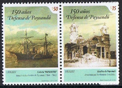 04 December 1864 during the invasion of Brazil in Uruguay a squadron of the Brazilian Navy under which the corvettes PARNAHYBA, BELMONTE, RECIFE and the gunboats ARAGUARY and IVAHY landed Brazilian forces which included 200 marines, 200 men of the1st Infantry Battalion and artillery pieces. These forces besieged and attacked Paysandú. The first attack was repelled