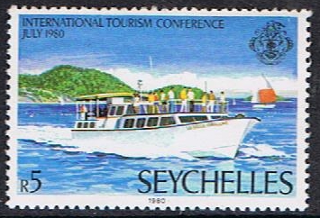 LA BELLE CORALLINE is given on the tourist launch depict on the Seychelles stamp of 5R.