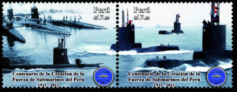 Peru issued two stamps in 2011 for the 100th anniversary of the submarine forces of Peru.