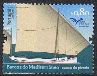 “canoa da picada”; Developed by Portugal in the late 19th century as a fast seaworthy vessel to carry the catch from fishing boats to the Lisbon market. Also fished and in modified form has been a pleasure craft; reported also as a cargo carrier from south coast ports. Typical features include a long rounded counter stern above a sharply raked sternpost, maximum beam abaft amidships, and a gaff mizzen stepped on the counter and sheeted to an outrigger. Plump stem, deep drag to the keel, round bottom with slack bilges. Shredded wool on the stemhead prevents chafing of the sail.