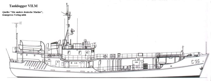 Named VILM, the ship was put to use for the National People's Army (NVA), first as a tanker and supply vessel, operating out of Peenemünde and crewed mainly by civilian seamen. Converted to a transporter for bilge water in the 70s on the Peene-Werft, the VILM then made regular trips to the bases of the National People's Army to take the ships' bilge water to a centralized treatment facility. This service was discontinued at the end of 1988.