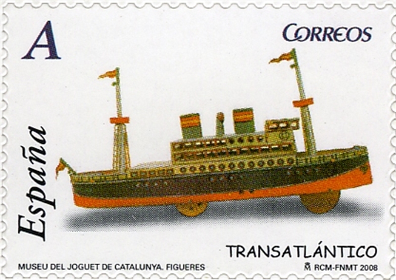 Spain issued in 2008 a set of stamps with old toys, of which two stamps have a maritime image. Both watercraft are unnamed.