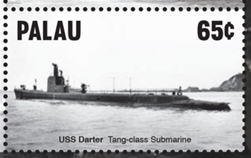 06 June 1943 launched as the USS DARTER (SS-227) , named after any of many small American fresh-water fishes, closely related to the perch family. She was christened by Mrs. E. B. Wheeler, wife of Edwin B. Wheeler, Shipbuilding Manager of Electric Boat Company, Groton, Connecticut. She was one of the Gato class. (Wrongly given on the stamp as one of the Tang-class)