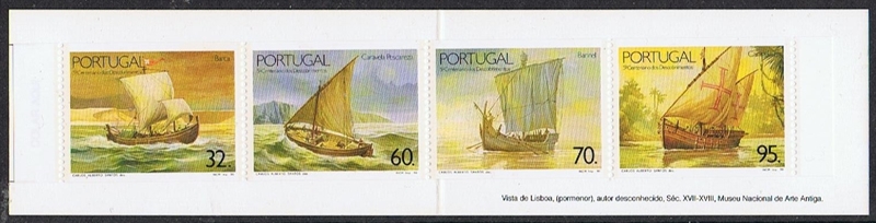 Portugal issued in 1990 four stamps and a stamp booklet which shows us vessel used by the early Portuguese Explorers.