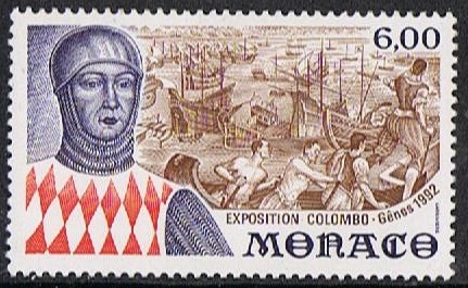 The stamp of 6 Frank issued by Monaco was issued for the EXPO Exposition in Genova in 1992 and shows us a portrait of Rainier I Lord of Cagnes 1267-1314 who was the first ruler what is now Monaco. According Navicula our German sister society the battle in the background of the stamp is designed after a fresco from the Spinola Palace in Genoa, which shows us Rainier’s I fleet but I can’t find this fresco on the internet.