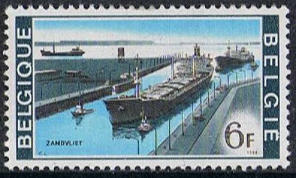 This stamp issue by Belgium in 1968 shows us the Zandvliet lock, with some ships the front one is a bulker given as the MINERAL GENT http://www.shipstamps.co.uk/forum/viewt ... 068#p13068 assisted by harbour tugs, the second one also a bulker is given as the MINERAL SERAING http://www.shipstamps.co.uk/forum/viewt ... ing#p13067 with her superstructure and bridge in the middle of the ship she is also assisted by a harbour tug, while on the river outside the lock there is a coaster. The coaster and harbour tugs are not identified..