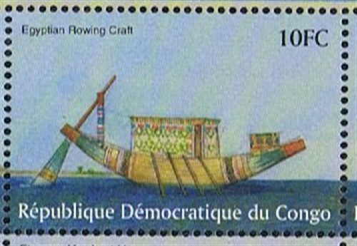 The stamp shows us a rowing boat without any crew, by comparing the vessel depict on the stamp with some wall paintings in the tomb of Pharaoh Tutankhamun is a Royal ship