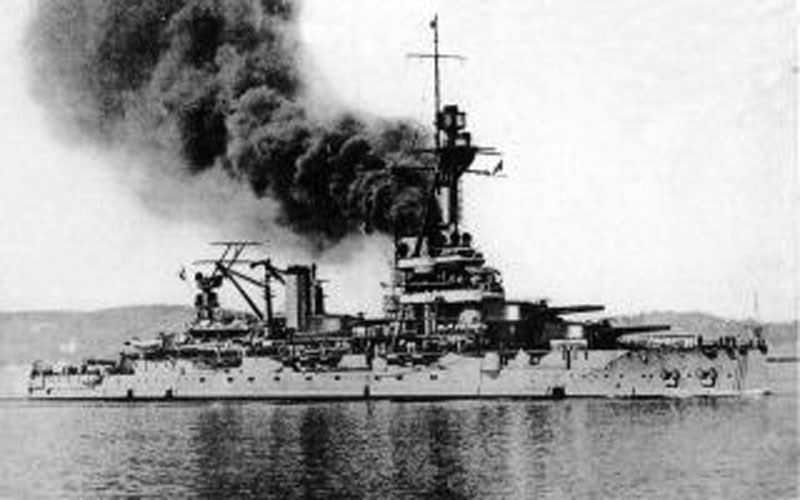 Armament when built: 10 – 340mm, 22 – 138.6mm, 7 – 47mm guns and 4 – 450mm torpedo tubes.