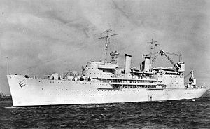 Class and type:Curtiss-class seaplane tender, Displacement:8,671 tons, L:160,73m. (527’4”) B:21,10m. (69’ 3”) Draft:6,65m. (21’ 11”) 4 Babcock & Wilcox Express boilers 400 psi 690°, 2 New York Ship Building Corp. paired geared turbines, double De Laval Main reduction gear, twin shafts, 12.000 shp. 20 kn. Range:12.000 nm. at 12 kn. Complement:1,195.