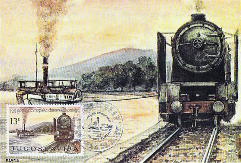 The stamp shows the Sip Canal with a steam locomotive pulling a paddlesteamer through the canal. I have not more info on the ship.